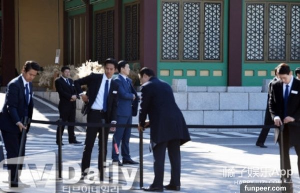 14點46,樸炯植、《太陽的後裔》女二金智媛和劉亞仁都已經到達了婚禮現場。