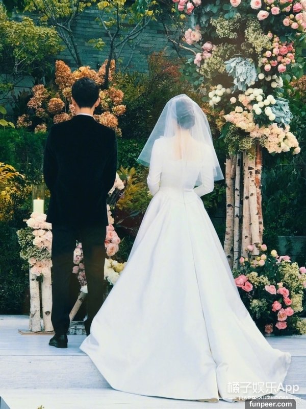 新娘婚紗大概的樣子也已經曝光 , 裙擺不是很拖地 , 還可以 。 橘子君也查到了婚紗品牌 , 選擇的是 迪奧 高級訂製婚紗 , 自己買的 , 因為之前已經說了拒絕贊助 。