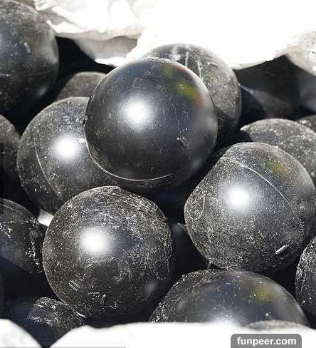 ▼球浮在表面,阻擋陽光,防止水蒸發,同時也防止致癌物質產生。