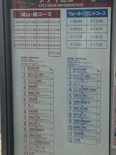 大概唯一要注意的是,鹿兒島有兩種觀光巴士,時間停靠站都差不多,不要坐錯囉,好像是咖啡色的車身,上頭有很可愛的圖案,不要看到寫鹿兒島觀光巴士就上車哦,要認明City view就對了,哈哈。
