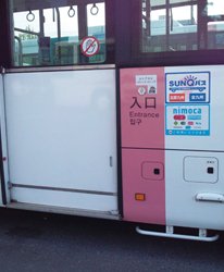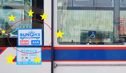 全九州公車及巴士,只要貼有這個標誌,就可以使用「SUNQ PASS」喔。
