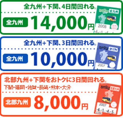 四、「全九州版」──3日鐵路周遊券: 15000日圓 / 每人