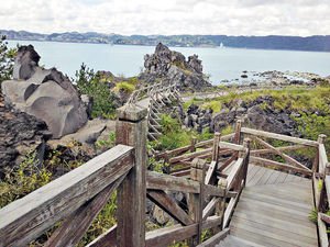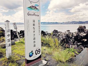 【第5站】從海邊的熔岩木棧步道望向鹿兒島巿區。