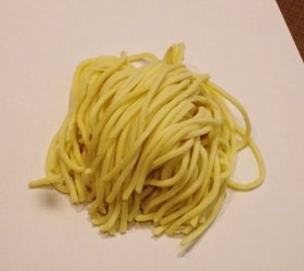 人稱「富山黑」的這道料理,那黑的秘密來自長時間熬煮魚醬,湯汁雖然看起來一片黑,但醬油經過重覆熬煮使得味道更為圓滑,喝起來竟然還蠻清爽的!店家相當自豪的深層水麵也被湯汁染得黑黑的,這可是麵條充份吸收湯汁精華美味的證據啊!