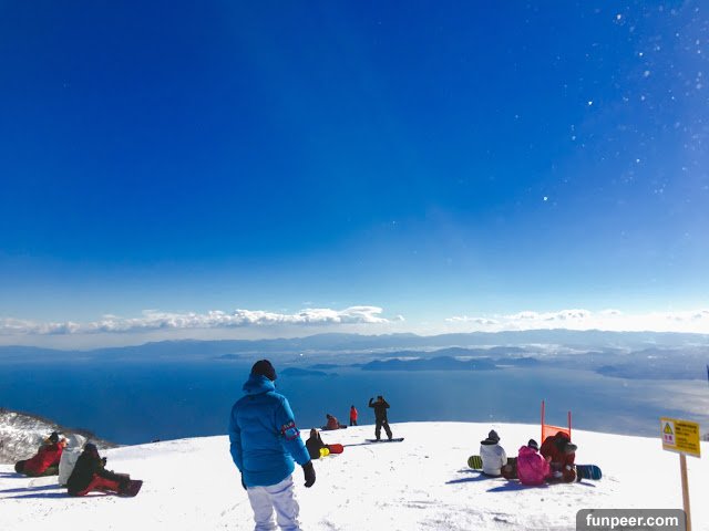 這座滑雪場,不但適合初學者,更是親子同遊的滑雪地,如果小孩不想滑雪,也設有雪盆可以在雪地上玩耍。搭乘纜車的途中,還能遠眺琵琶湖,覆蓋在雪地中的琵琶湖,風景優美、極具詩意。