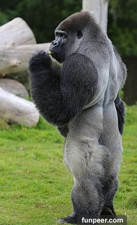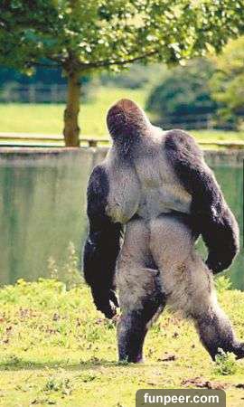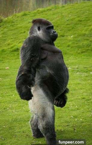 近幾年常有跟動物有關的電影,像是金剛、猩球崛起等,都算是蠻熱門的電影,讓人看完不禁覺得,會不會哪天猩猩就跟人類一樣厲害了呢?在英國有隻猩猩,就跟人類的動作簡直一模一樣呀! 一般的猩猩都是以手腳並用的方式走路,而這隻英國的大猩猩,能夠像人類一樣用一雙腳直立走路,讓它在網路上吸引了許多關注。 ▼英國肯特郡林姆尼港野生動物園(Port Lympne Wild Animal Park),有一只叫安巴姆(Ambam)的大猩猩,能夠完美地保持兩只後腿的平衡,腰桿筆直如同人類一樣走路。