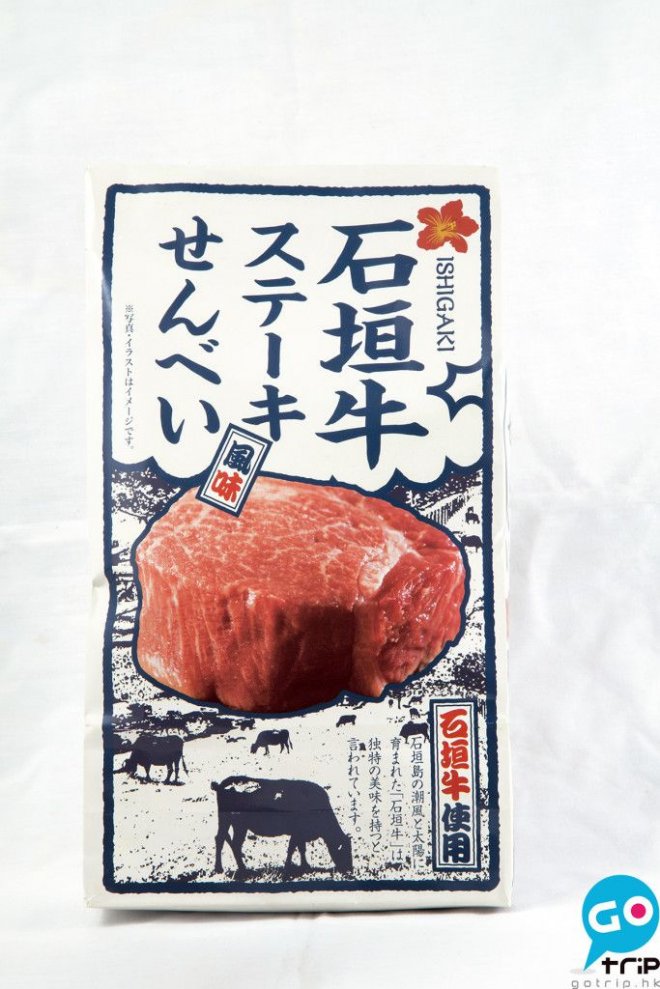 煎餅外形像蝦餅,一開盒就傳來濃烈的牛肉味,不過吃起來牛扒味不算濃。買包有石垣牛味的煎餅給朋 友們望梅止喝一下