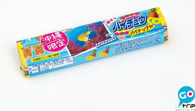 森永推出的 沖繩限定菠蘿味軟糖。使用沖繩產菠蘿果汁製,味道香甜帶酸,另有酸檸味和芒果味亦值得一試。