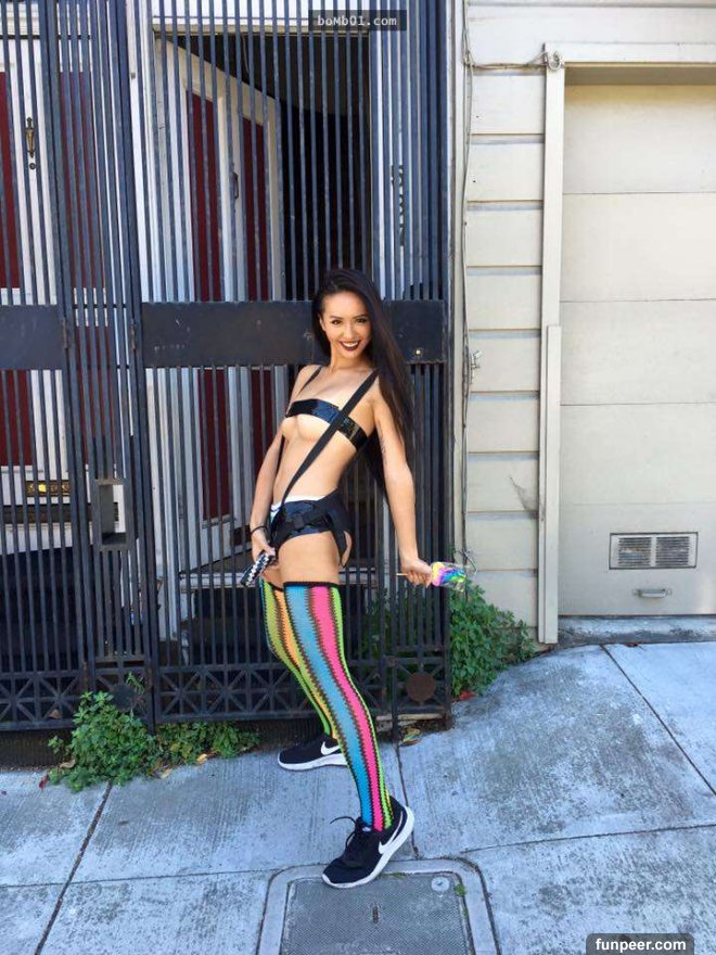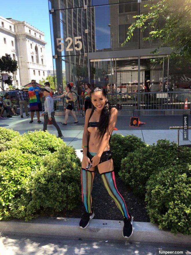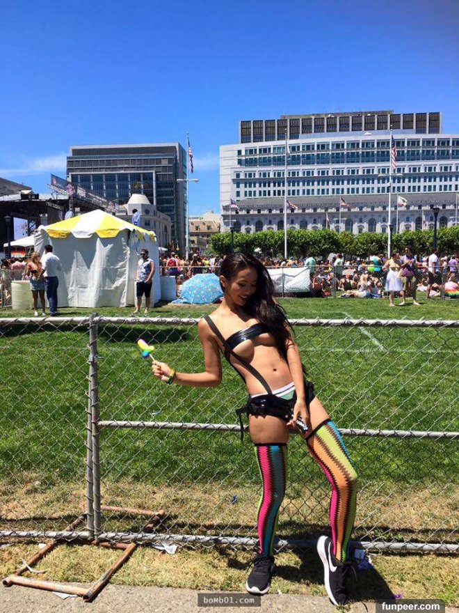 上半身還不是最狂…在臉書上有著眾多粉絲追蹤的黑澀會美眉薔薔(本名林嘉凌),作風一向大膽,先前到美國去參加了電音派對的時候,還曾經只用「大麻葉」造型的貼紙遮點,引發了一陣話題。而最近她到了美國舊金山去參加了同志大遊行時,這一次的性感裝扮,卻讓大家發現了一個「亮點」! ▼她只用了黑色的膠帶捆綁住胸部,超火辣的造型又引起了一陣討論。