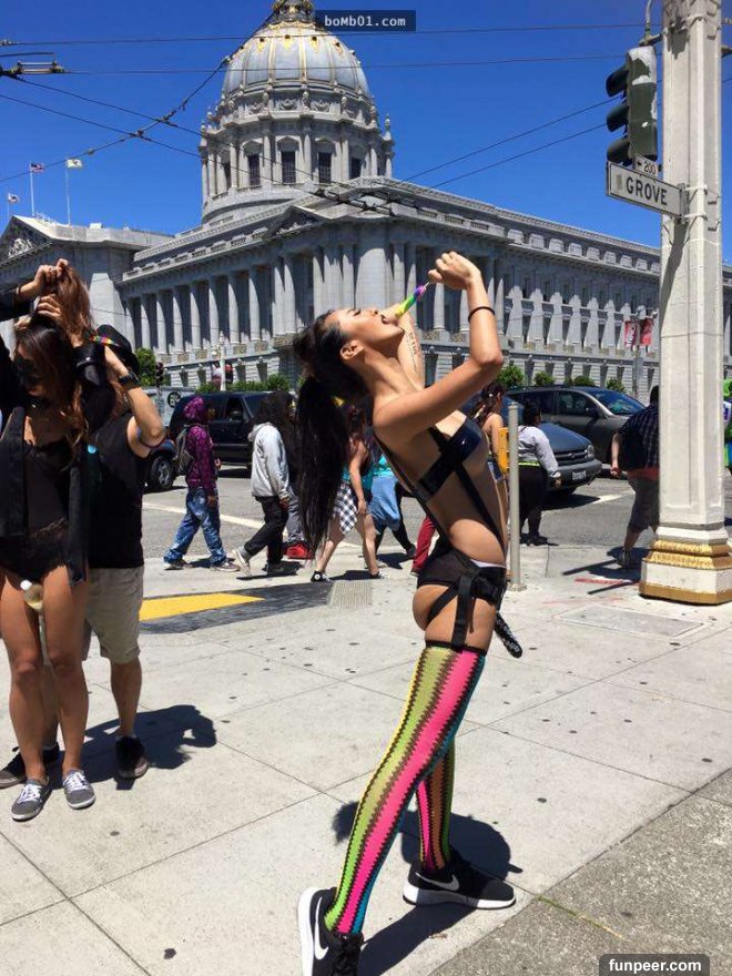 前黑澀會美眉飛到美國參加遊行,「完全豁出去挑戰尺度」,看到她的下體部位時大家都愣住了!