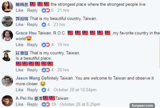 ▼許多網友紛紛湧入留言,還留下國旗的圖示,讓跟多人能夠更加了解台灣。