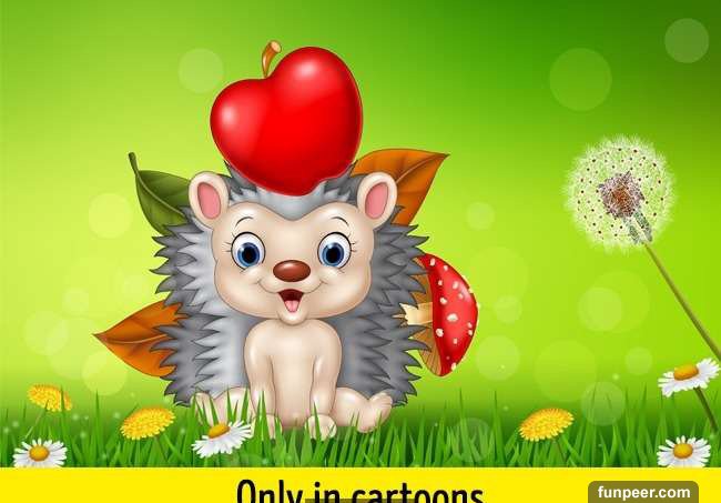 ▼為什麼刺蝟背上背蘋果?這是童書上才有的畫面,刺蝟是雜食性動物,大多數時候吃蟲子。如果你在野外看到刺蝟背上背蘋果,那應該只是意外而已。
