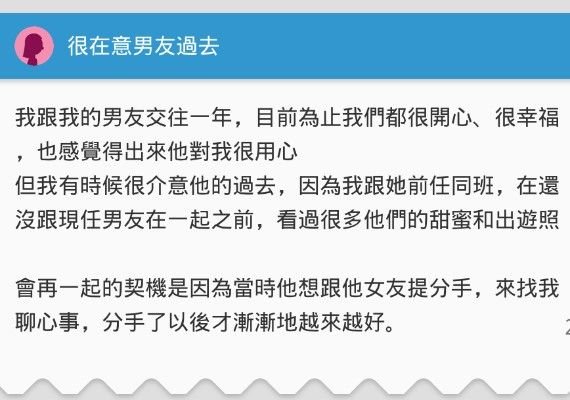 雖然嘴上說著「我真的一點都不在乎你的過去」,但卻也很難在心中釋懷,或許,這也是在愛情中我們每個人都需要學習的難題。