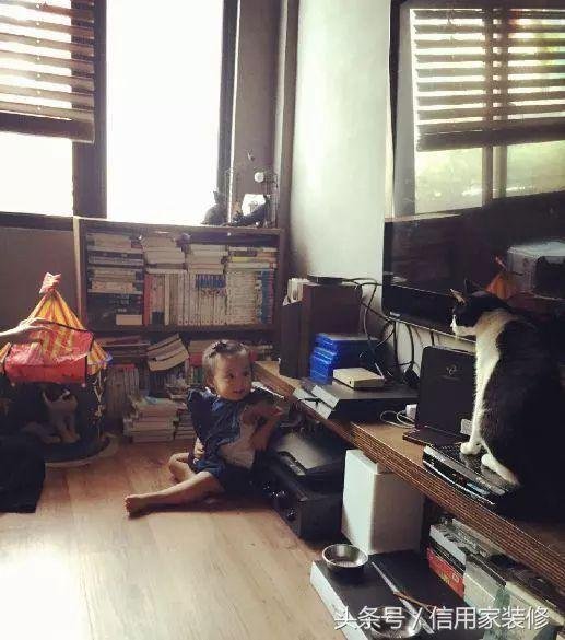 小女兒的房間,在裝修設計上,追求舒適簡單。實木地板,電視櫃上塞滿了書籍和玩具,讓小女兒能自由自在地玩耍。話說,小女兒是不是更像爸爸呢?