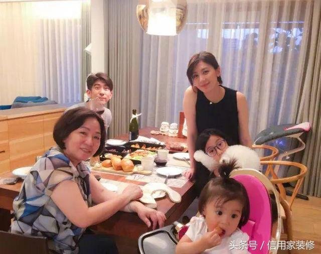 在裝修設計上,家中很多傢具採用的都是實木,更加環保。看著一家人其樂融融吃飯的場景,難怪賈靜雯現在笑容越來越多了。