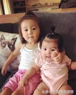 在傢具佈置上,深灰色沙發與後面的置物櫃相搭配,萌貓圖案抱枕顯得這兩個小公主越發可愛了。