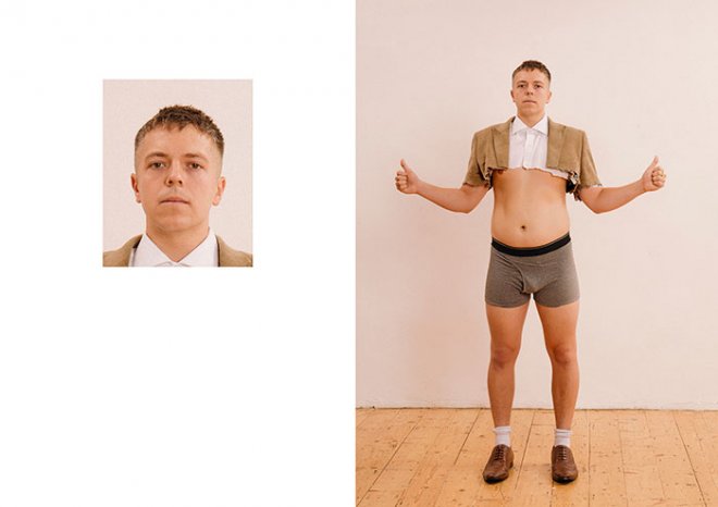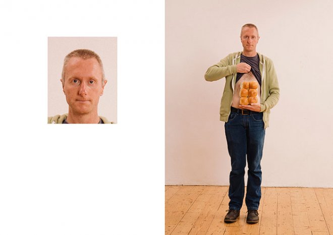 馬克斯因此有了靈感,突發奇想拍攝了一系列名為「證件照(Passport Photos)」的攝影集,光看左邊的照片,只會覺得這是一張普通的證件照,但你絕對想不到這張看似「正常」的證件照,本尊實際上發生了什麼事!