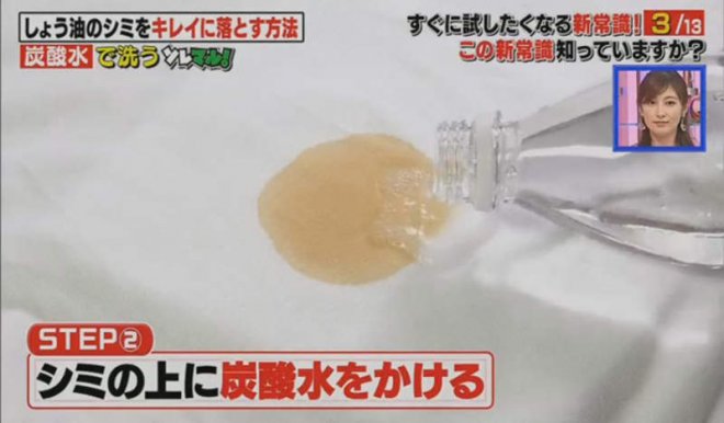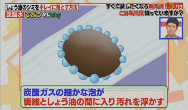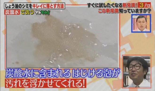 「碳酸水當中的泡泡會讓污漬浮起來!」