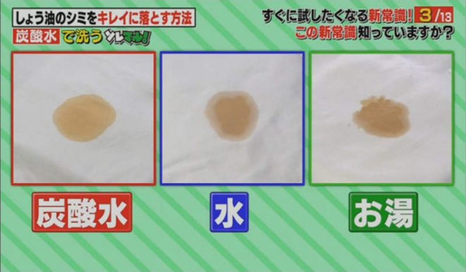 圖片來自:電視截圖碳酸水、冷水、熱水的清潔力比較