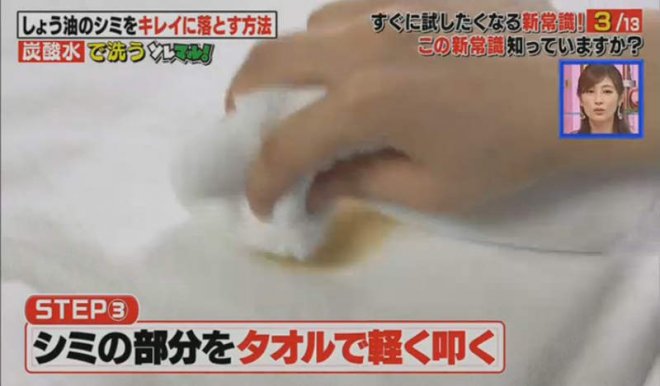圖片來自:電視截圖然後用毛巾「拍打」醬油漬