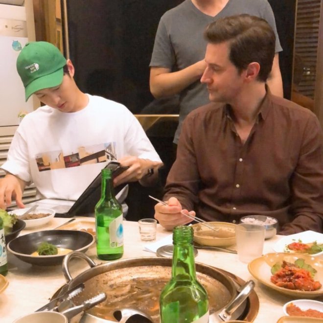 8月24日,有網友在社交平台發布了與宋仲基一起在燒肉店聚會的照片。照片中,宋仲基身穿白色T恤,頭上綠色帽子十分搶鏡。宋仲基開心與短髮美女合影,看起來心情大好。這也是宋仲基與宋慧喬離婚後,罕見露面。