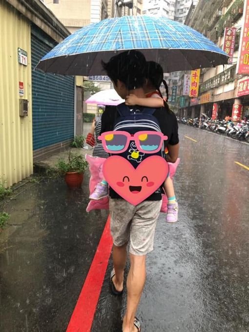 從圖中可以看到,她的老公一手緊抱女兒另一手還忙著撐傘提書包、雜物。儘管得特地早起面對外頭無情的大雨,但他不但沒有任何怨言,甚至更露出一臉幸福模樣,讓身為正宮的原Po好吃醋!