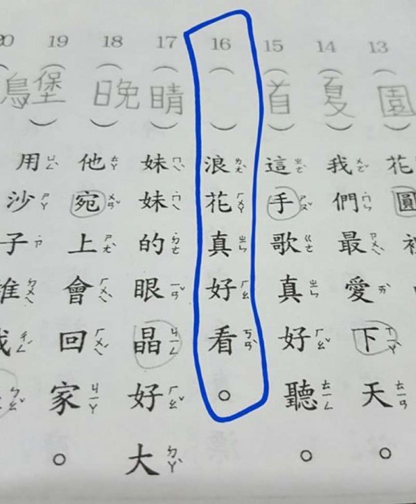 這兩題分別是「綠色草原真美麗」、「浪花真好看」。