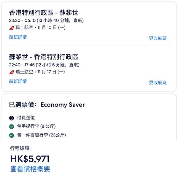 【機票有效期】1個月