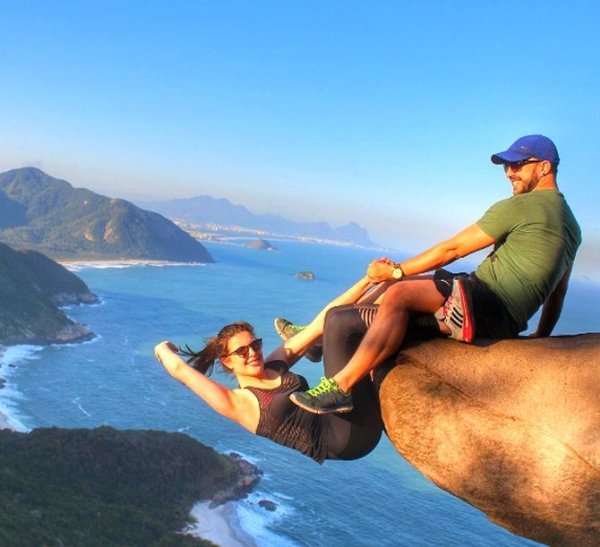 21歲的學生瑪歇莉(Marcelle Rangel da Cunha)跟28歲的未婚夫路易絲( LuizFernandoCandeia)在懸崖上驚險合影~