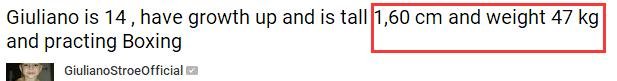 很多男孩都是在15或16歲左右猛竄身高的,可見Giuliano從小健身,但身高處於正常範圍!