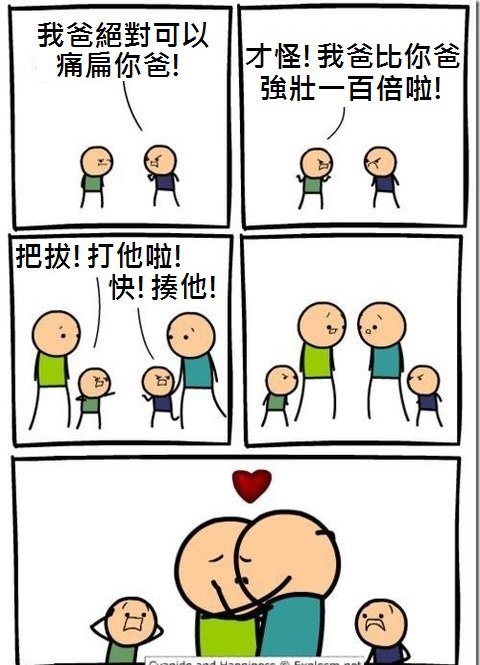 兩個小屁孩在吵架….比誰的爸爸厲害,結果兩人的爸爸….