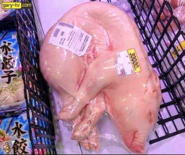沒看過一整隻豬「被真空包裝」!不是平常我們看見的「豬的某個部位」,而是從頭到尾完完整整的豬,被擺放在架上販賣,看了不禁覺得「好像哪裡怪怪的」…