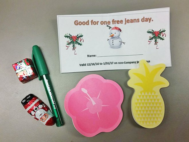 12.「前500強大企業送的聖誕禮物,沒有聖誕節獎金,只有便條紙、兩塊巧克力、原子筆,跟開放穿牛仔褲一天。」這跟公司宣布沒有年終獎金一樣慘啊....