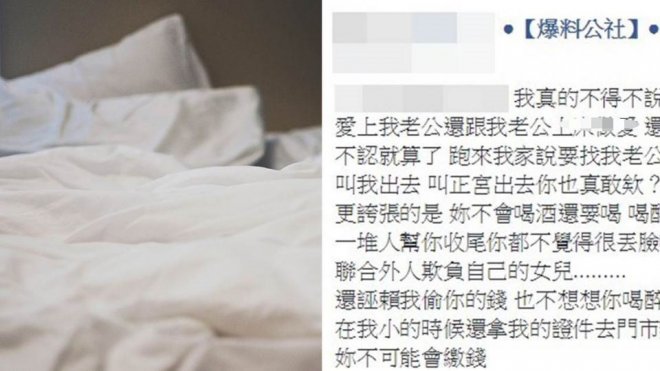 最扯家醜萬人看!台灣台南市一名女網友在臉書爆料公社PO文控訴媽媽愛上自己的先生,兩人還發生?,複雜的三角戀情。