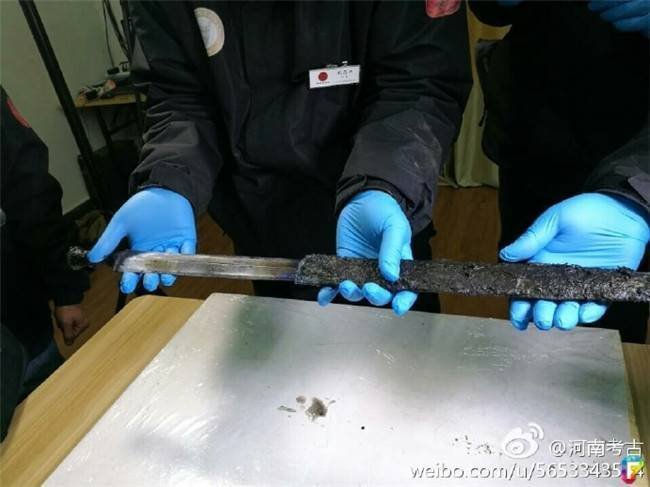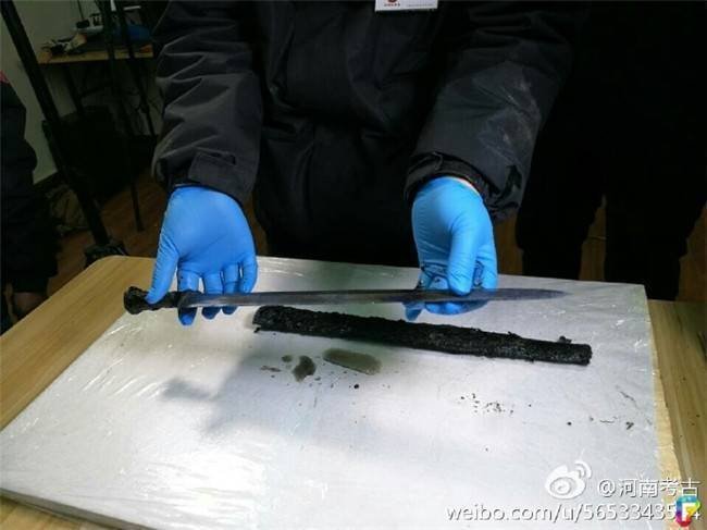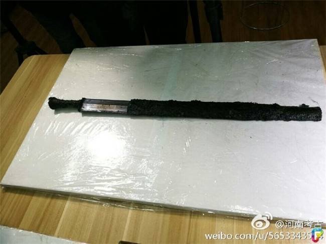 經過2000年的時間洗禮,寶劍的外鞘已經腐爛發黑。