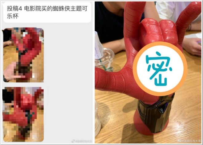 英雄系列電影《蜘蛛人:離家日》先前在台上映,吸引眾多影迷前往戲院朝聖,劇中主角蜘蛛人的周邊商品也形成一大商機。近日,有網友在微博分享一款「蜘蛛人冷飲杯」,外型酷炫又帥氣;豈料,用法卻讓使用者相當崩潰,照片曝光瞬間笑翻一票網友。