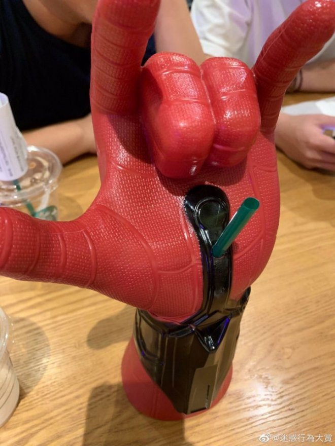微博帳號「迷惑行為大賞」日前在貼文分享一個「蜘蛛人冷飲杯」,畫面中可見,一名男網友得意洋洋拿出購買的蜘蛛人冷飲杯,造型為蜘蛛人的一隻手,比出噴絲的招牌手勢,模樣相當帥氣,而吸管插入的位置則在手掌心。