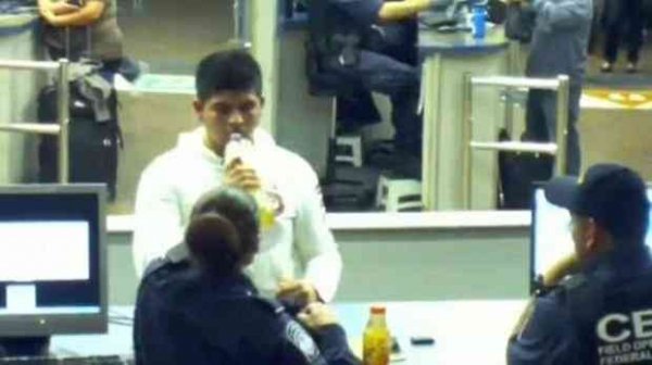 在影片中,海關人員並不關心克魯茲正在喝著面前的液體,彼此微笑著聊天。