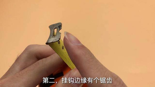 如果你在使用捲尺時需要在測量的地方畫上一條線,而手中又沒有筆,怎麼辦?那這個鋸齒狀的邊緣就起作用了,只要將它按住,在需要劃線的位置摩擦幾下,這樣就有一條線了,非常的方便。