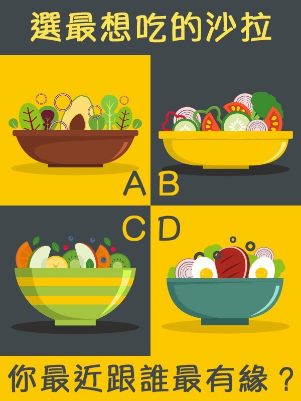 選最想吃的沙拉,看最近一個月你跟誰最有緣份?