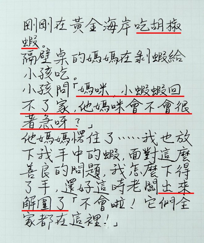 吃蝦時隔壁小孩的提問讓我差點吃不下,好險老闆解答了...XD