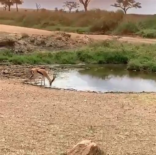 ▲羚羊在湖邊喝水。(圖/翻攝自ItsMutai Twitter)