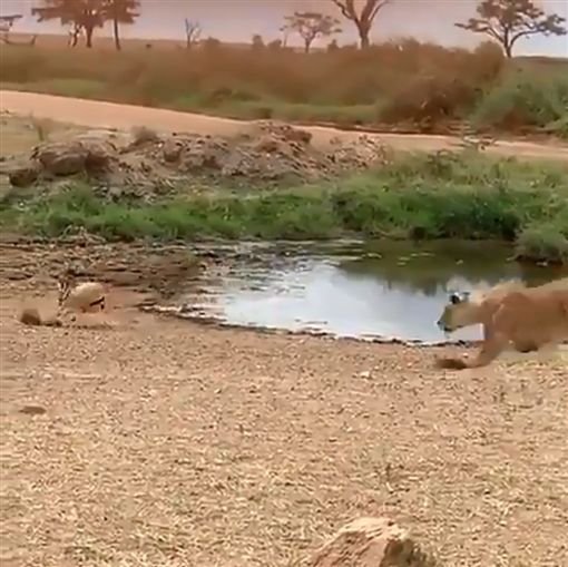 在野生動物的世界中,弱肉強食是不變的定律,而如何運用自身先天上的優勢去努力生存則是活下去的不二法門。影片中這隻湯氏瞪羚喝水時早已察覺到動靜,抬起頭來確認沒事後又繼續低頭喝水,沒想到過了幾秒突然有隻獅子朝牠飛撲而來,但牠卻不慌不忙拐了個彎,輕巧地閃過獅子的攻勢,這隻聰明又敏捷的瞪羚成功躲過被掠食的危機,讓不少網友都感到驚訝。