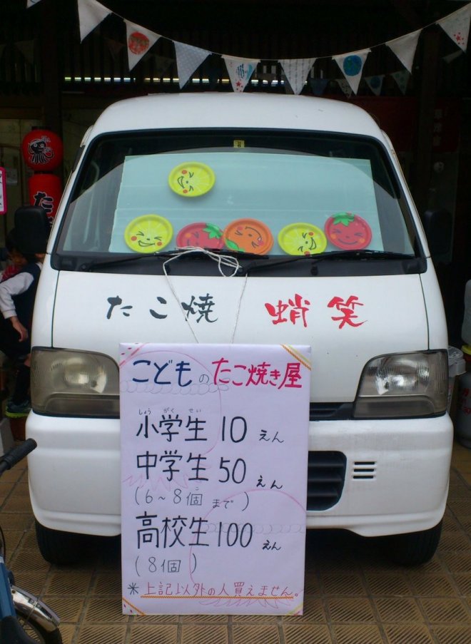 他經常開著一輛小貨車,前往各地賣章魚燒給小朋友,而店名甚至還取名叫做「小朋友的章魚燒店」。