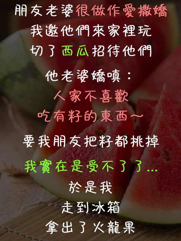 朋友的老婆在我面前撒嬌,要她老公幫他挑西瓜籽,所以我…