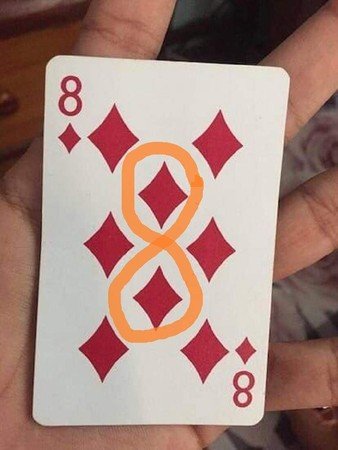 什麼~把撲克牌翻前翻後還是找不到?除角落2個8外,第3個8到底在哪?嘿嘿嘿…好啦!答案告訴你,隱藏數字8就在這8顆菱形裡,想不到吧~這麼大一個8,要你跳脫視覺思維才看得到呢!