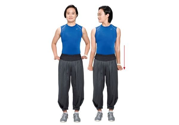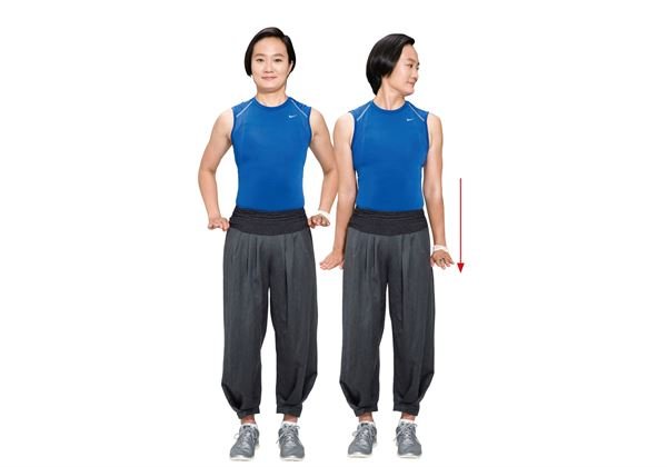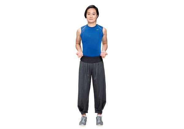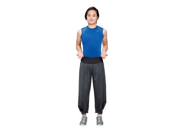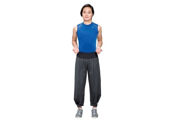預備動作:雙腳打開與肩同寬,雙手掌心朝上置於腰側。(圖片/瑞麗美人國際媒體提供)