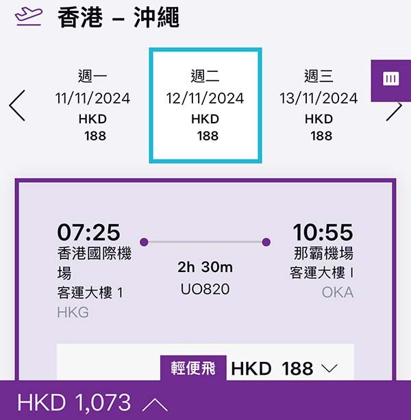 來回連稅價錢:HK$1,073起(不包寄艙行李,只包輕便背囊)
