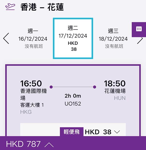 【花蓮】12月12日起復飛!香港快運來回連稅$787起,包20kg行李$987起!2025年3月29日前出發