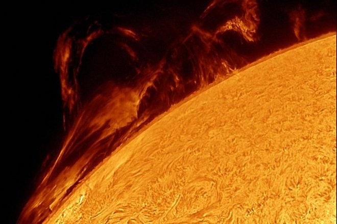 在宇宙中的眾多天體之中,太陽無疑是人類最關心的一個,以至于每時每刻都有大量的觀測設備在關注著太陽的一舉一動。近日,一位來自阿根廷拉斐拉的天文攝影師Eduardo Schaberger Poupeau拍下了一張引人注目的照片,該照片顯示,太陽上升起了一道巨大的「火墻」。